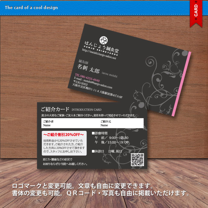 ロゴマーク・QRコード・写真も自由に掲載できます。