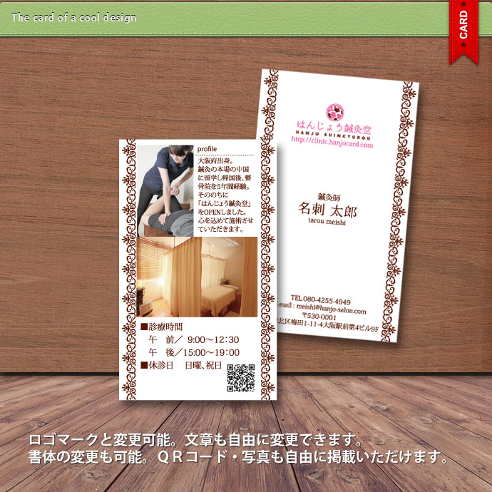 ロゴマーク・QRコード・写真も自由に掲載できます。