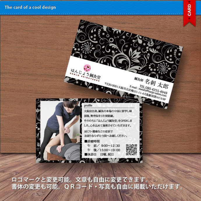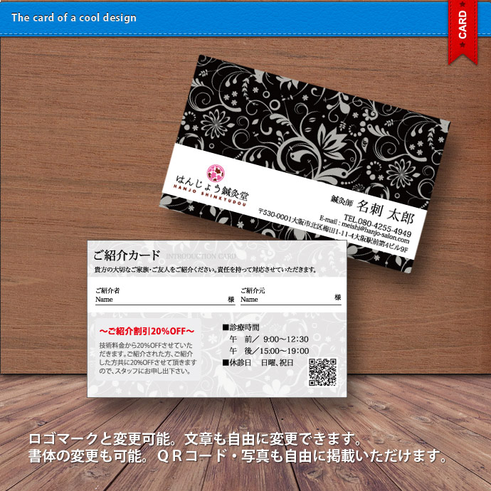 ロゴマーク・QRコード・写真も自由に掲載できます。