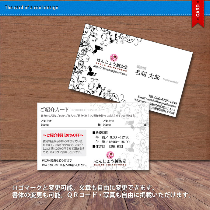 ロゴマーク・QRコード・写真も自由に掲載できます。
