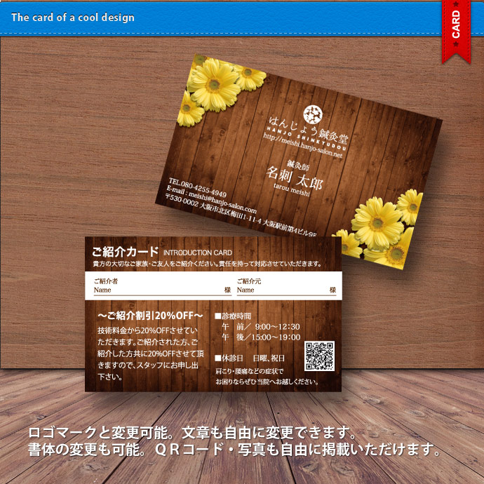 ロゴマーク・QRコード・写真も自由に掲載できます。