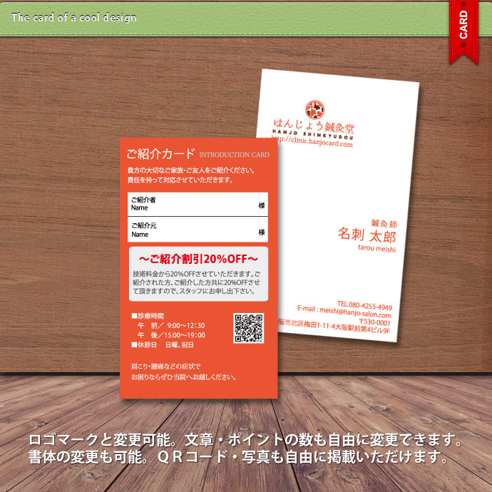 ロゴマーク・QRコード・写真も自由に掲載できます。