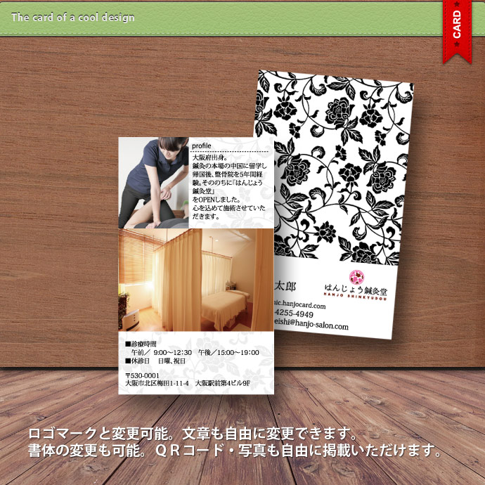 ロゴマーク・QRコード・写真も自由に掲載できます。