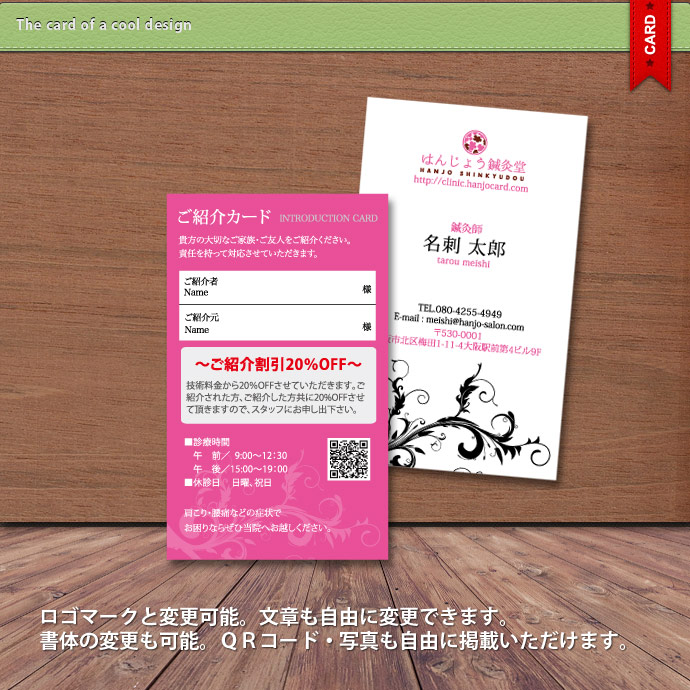 ロゴマーク・QRコード・写真も自由に掲載できます。