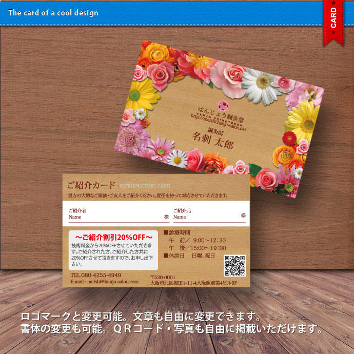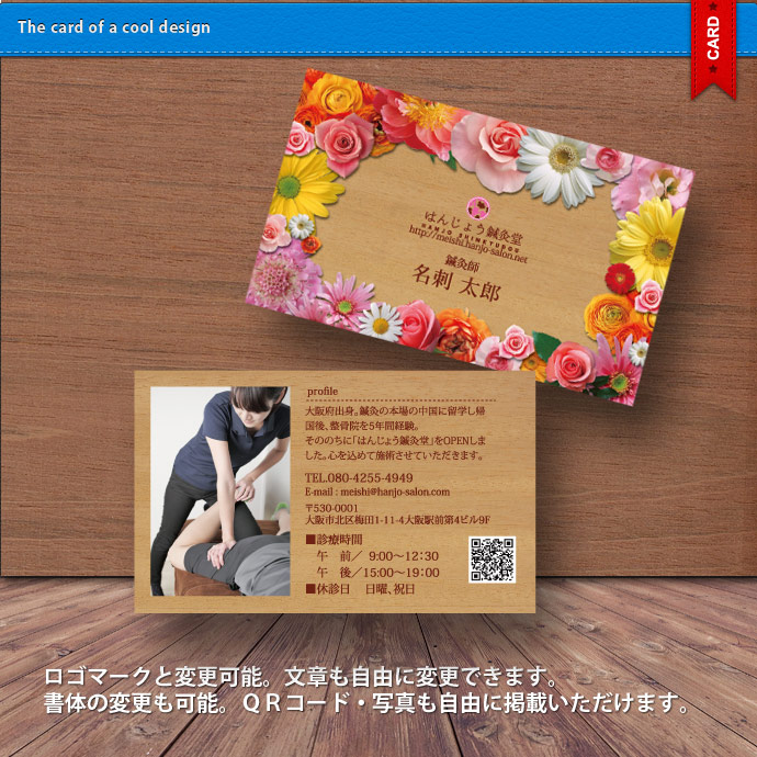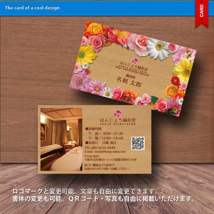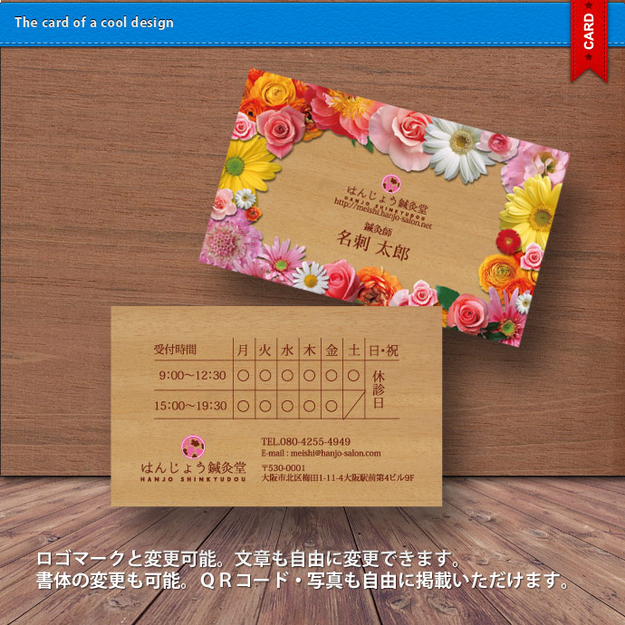 ロゴマーク・QRコード・写真も自由に掲載できます。