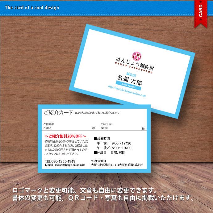 ロゴマーク・QRコード・写真も自由に掲載できます。