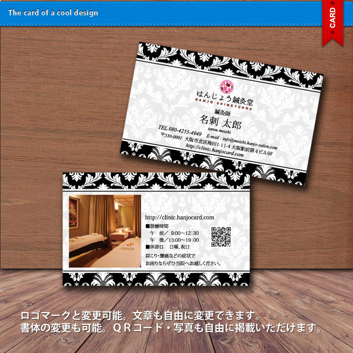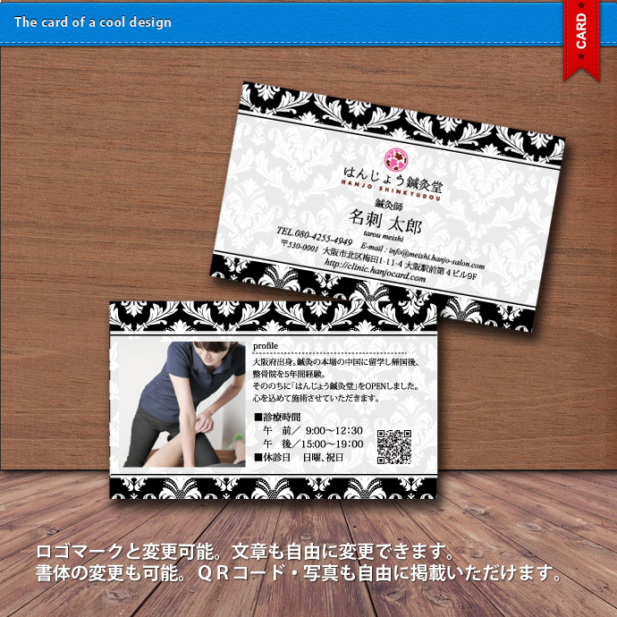 ロゴマーク・QRコード・写真も自由に掲載できます。