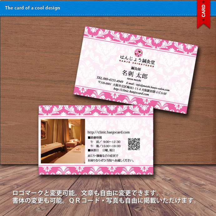 ロゴマーク・QRコード・写真も自由に掲載できます。