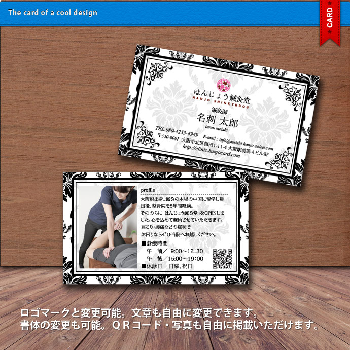 ロゴマーク・QRコード・写真も自由に掲載できます。
