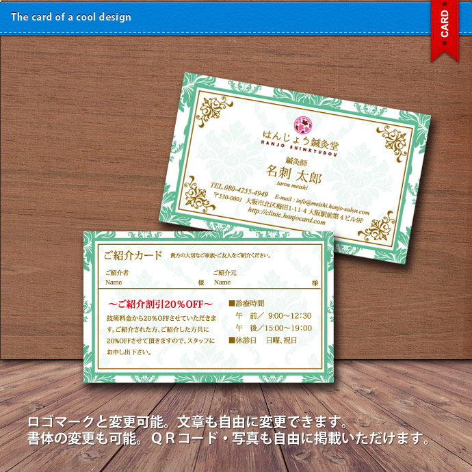 ロゴマーク・QRコード・写真も自由に掲載できます。
